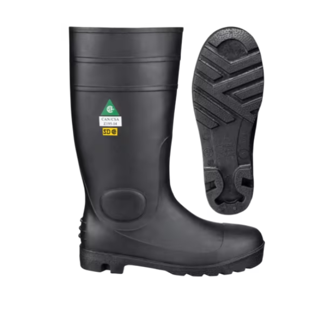 Engineered for harsh job sites, these steel toe PVC boots combine rugged protection with all-day comfort. The puncture- and tear-resistant construction shields against sharp and heavy hazards, while the static-dissipative design minimizes shock risks. With a durable, slip-resistant outsole and multiple cut-off lines for adjustable height, this boot is built to adapt to demanding environments without compromising on safety or performance.