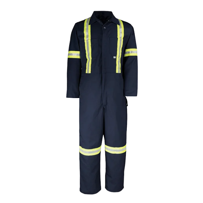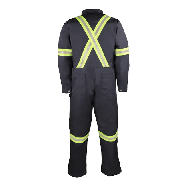 Stay safe and comfortable with the Premium Work Coverall (429BF). Made from strong polyester and cotton, it’s built for tough jobs. Bright reflective tape wraps around for 360° visibility, including an “X” on the back. It has a two-way zipper, snap closures, and a stretchy back to help you move easily. With plenty of pockets for your tools and made in Canada, this coverall is tough and easy to clean.