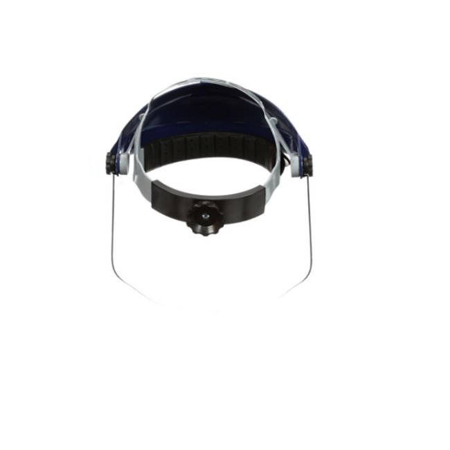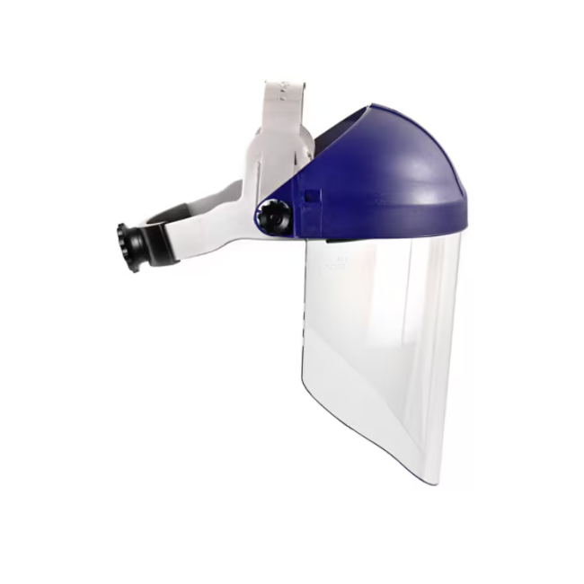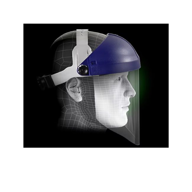 - Integrated ratchet headgear and clear polycarbonate face shield